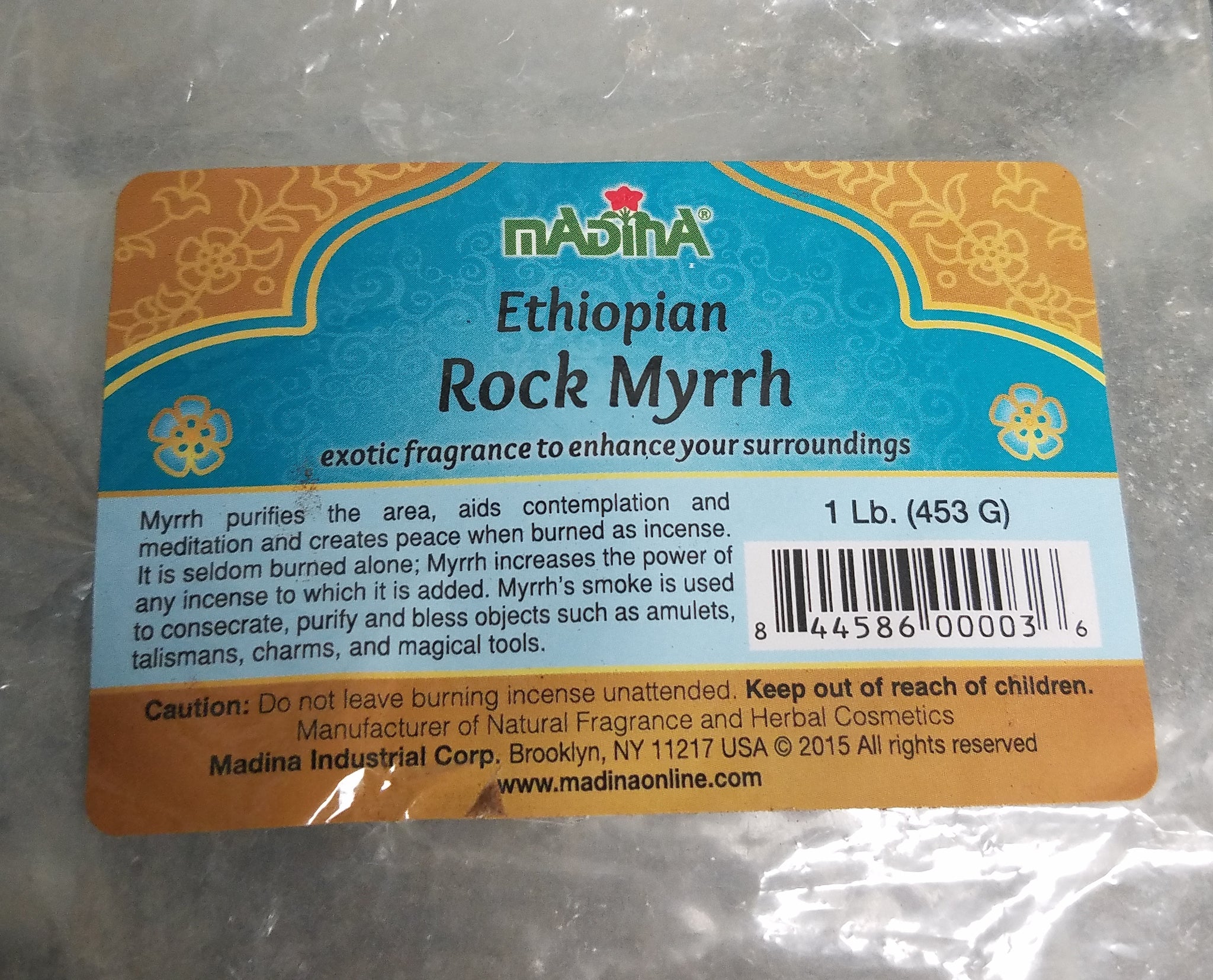 Description: Myrrh purified the area, aids contemplation and meditation and creates peace when burned as incense. It is seldom burned alone; Myrrh increases the power of any incense to which it is added. Myrrh's smoke is used to consecrate, purify and bless objects such as amulets, talismans, charms, and magical tools.
